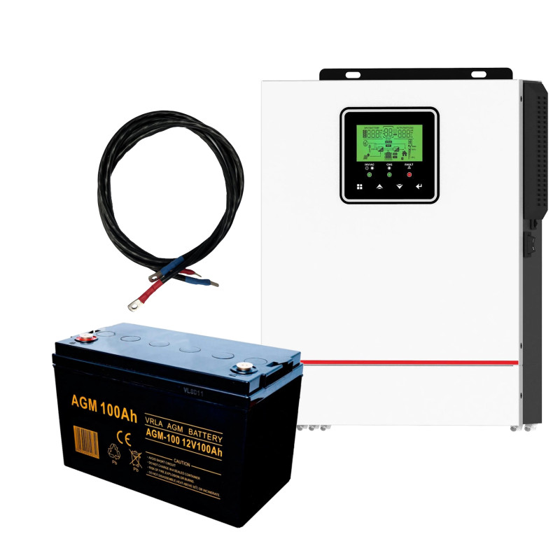Комплект безперебійного живлення 1200КВт/г: гібридний інвертор 1000Вт + акумулятор 12В + кабелі 1м