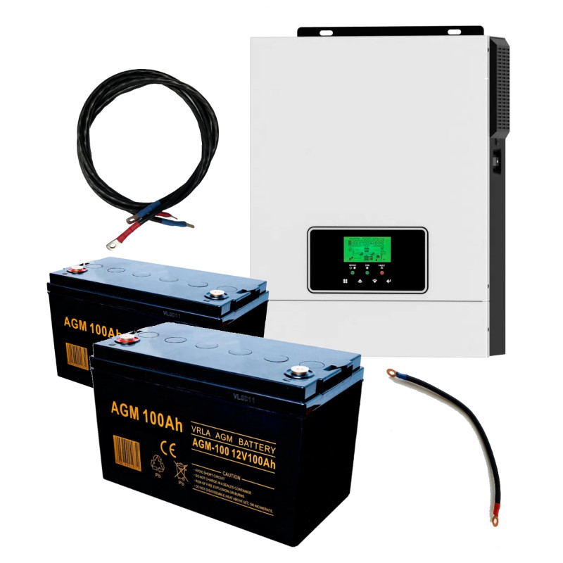 Модель: гібридний інвертор 3000Вт + 2 акумулятори 24В + кабелі 1м