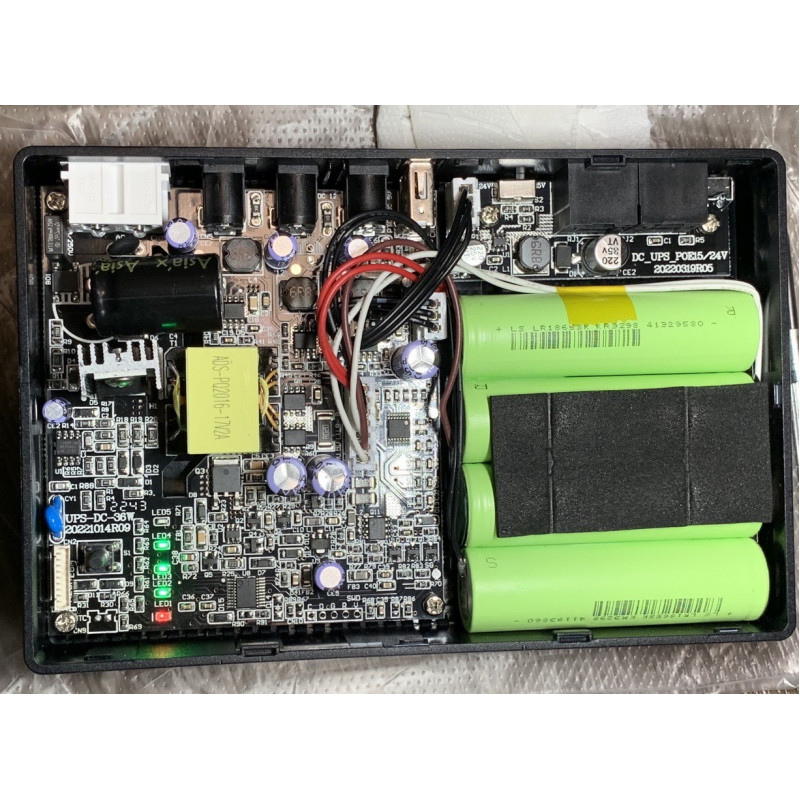 ДБЖ DC1036P UPGRADE - покращений більш якісними конденсаторами та літієвими акумуляторами ємністю 14000 мАг (4 елементи 18650 гарної якості по 3500 мАг), що дає змогу на практиці працювати роутеру від 6 до 15 годин без перерви (залежить від струму споживання вашого роутера), виходом USB та портом POE з селектором напруги 15В або 24В (опція), інтелектуальною схемою із захистом від надмірної зарядки і розрядження, короткого замикання та можливістю вибору вихідної напруги постійного струму DC 5В/9В/12В.